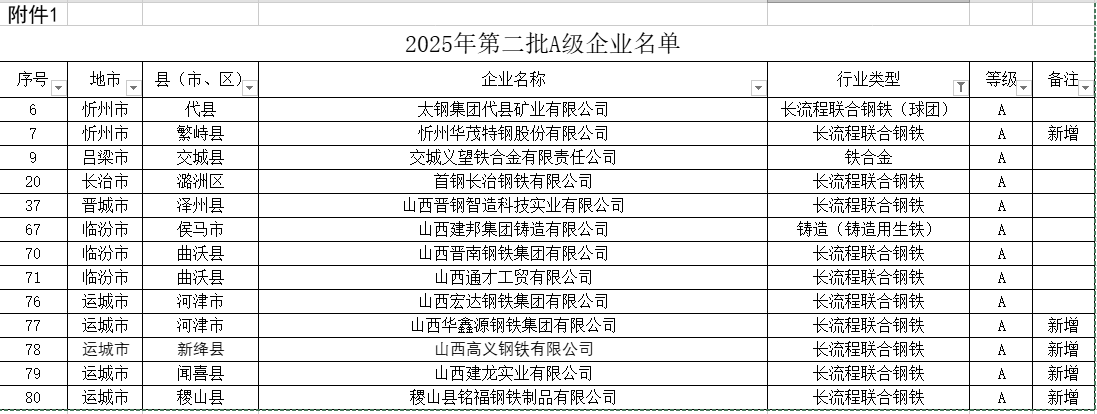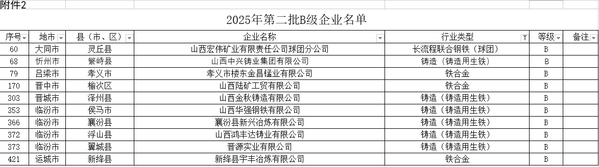 按照生态环境部重污染天气重点行业绩效分级工作的有关要求,现将山西省2025年第二批重点行业A级、B级、引领性企业名单向社会公开。如对上述名单有异议,请将意见及建议发shanxidaqizu@163.com。欢迎社会各界监督,敬请提出宝贵意见。 附件:1.2025年第二批A级企业名单 山西省生态环境厅 2026年4月13日