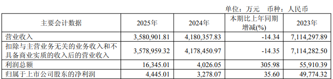 新钢股份发布2025年年度报告,实现营业收入358.09亿元,同比下降14.34%;归属于上市公司股东的净利润为0.44亿元,同比增长35.60%。