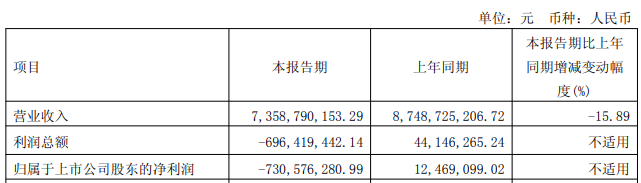 新钢股份发布一季度报告,2026年一季度实现营业收入73.59亿元,同比下降15.89%;归属于上市公司股东的净利润为-7.31亿元,由盈转亏。