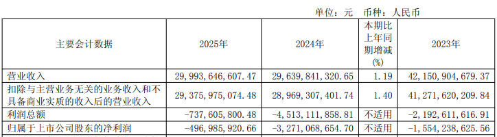 安阳钢铁公布2025年年度报告,报告期内,公司实现营业收入299.94亿元,同比增加1.19%;归属于上市公司股东的净利润为-4.97亿元。